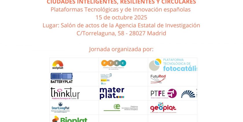 La Jornada “Ciudades Inteligentes, Resilientes y Circulares”organizada por las plataformas tecnológicas y de innovación, tiene como objetivo principal generar un espacio de encuentro estratégico para analizar los retos, necesidades y oportunidades que plantea la transformación de nuestras ciudades hacia modelos más resilientes, circulares e inteligentes.